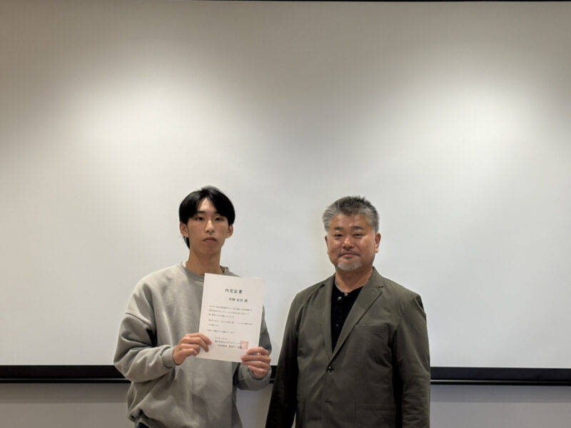 式では、社長より歓迎の挨拶とともに、当社の今後の事業方針や、新たに仲間となる内定者への期待が述べられました。内定者は緊張しつつも晴れやかな表情で内定証書を受け取り、社会人としての第一歩を踏み出す決意を新たにしていました。